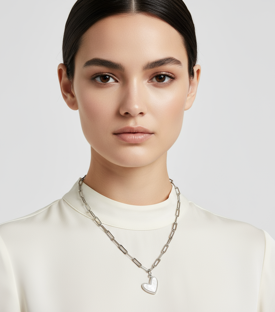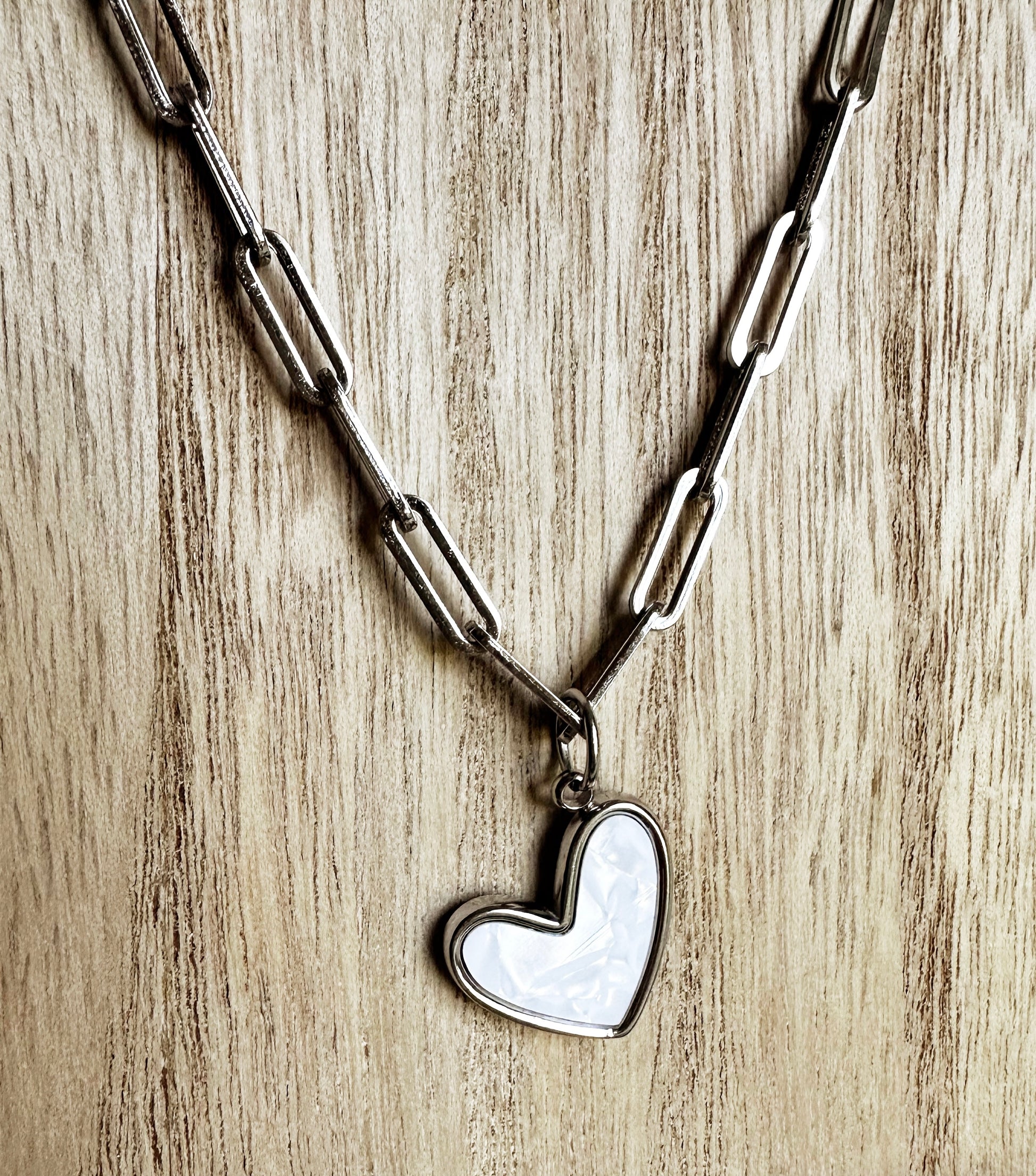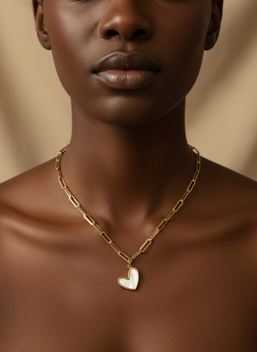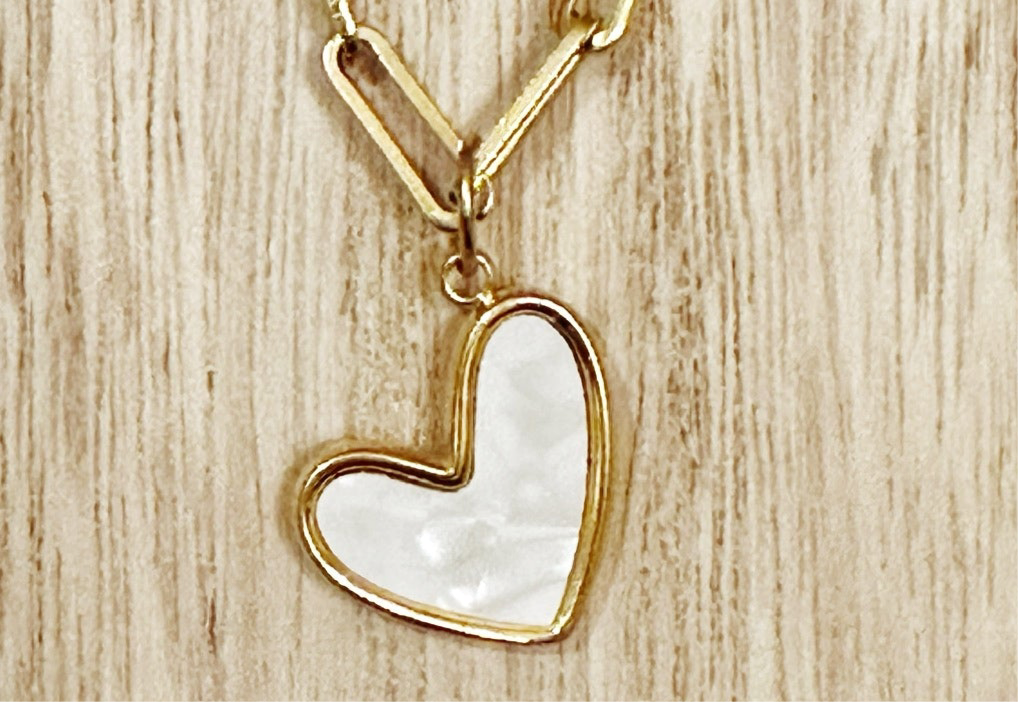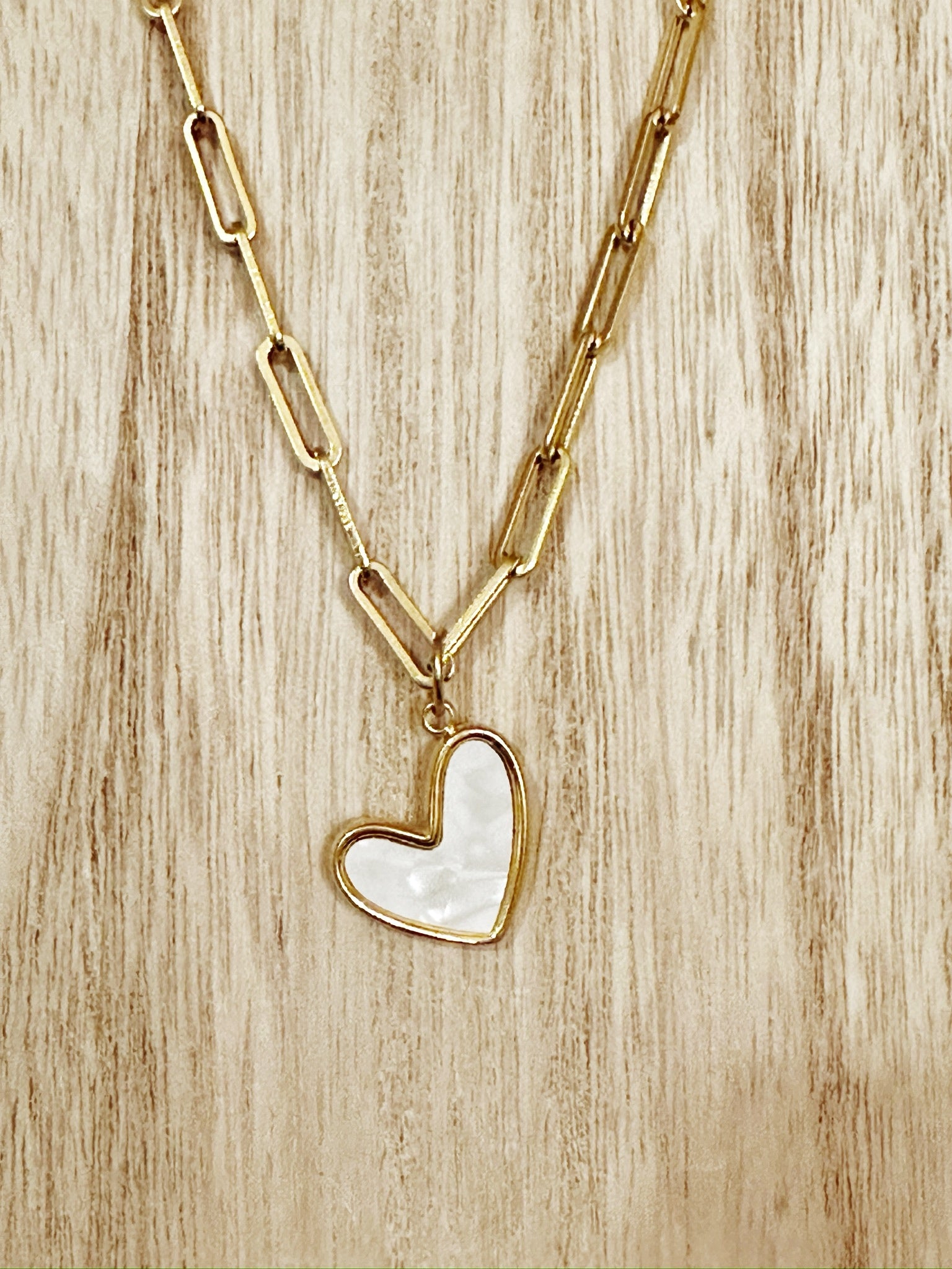 Meet Capri, our golden paper-clip chain adorned with a mother-of-pearl heart pendant and all the coastal chic vibes you need-because love should shine everywhere!