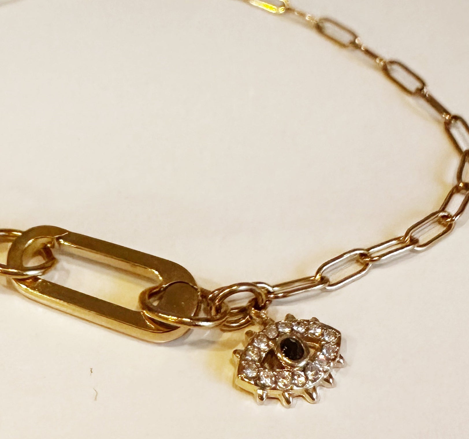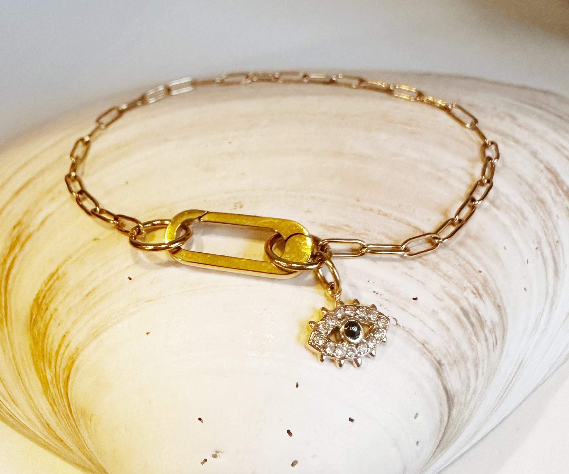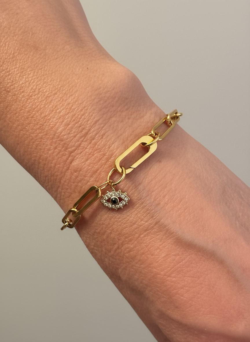 The Venice is a sleek paperclip chain with a radiant gold clasp, lightweight, versatile, perfect for stacking or wearing solo. A genuine apatite crystal or a sparkly zirconia serves as an added touch for minimalist style.
