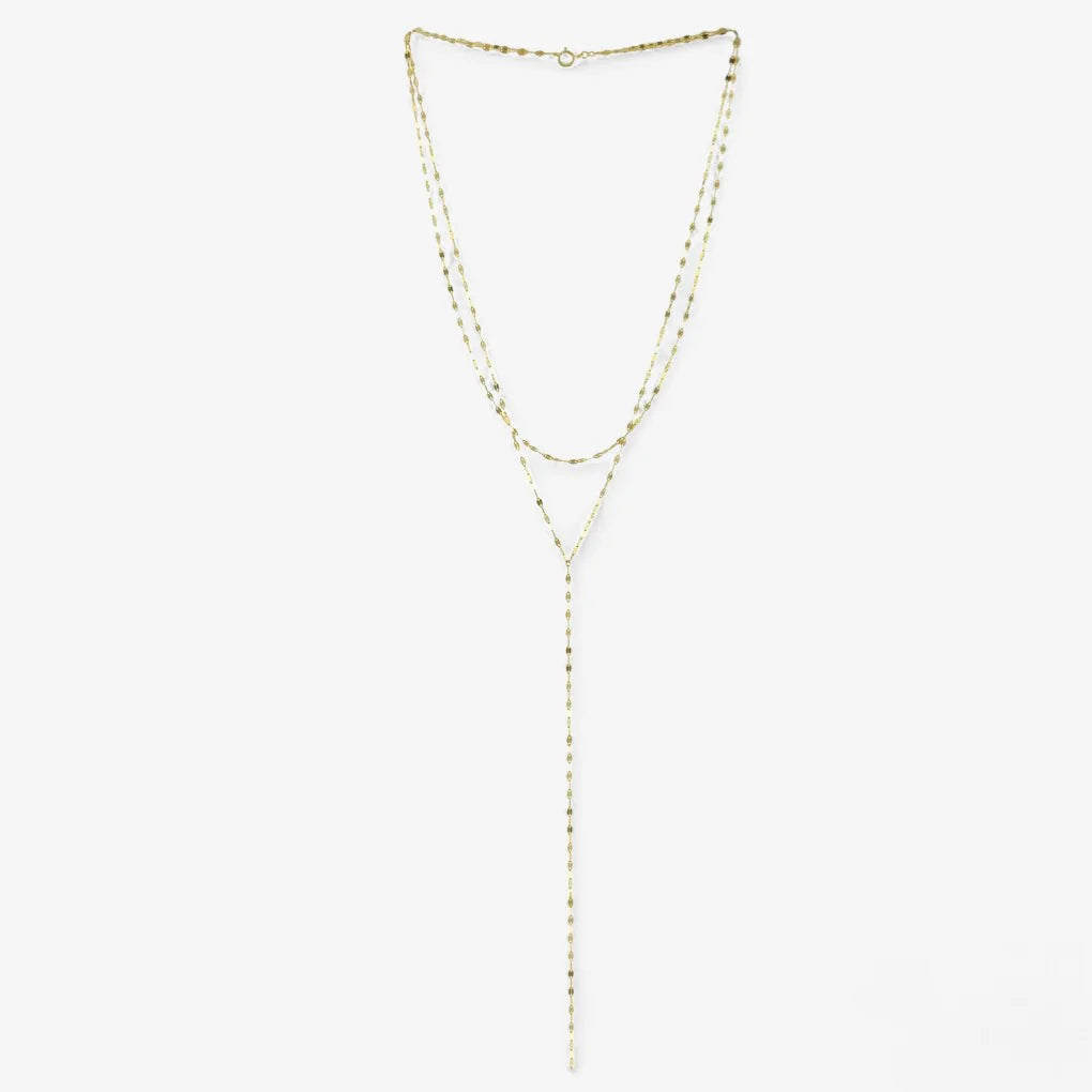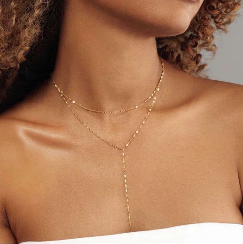 Meet Catalina-your perfect layering necklace that’s barely there…until the light hits. Designed with delicate faceted links that subtly shimmer, this Y-style lariat adds just the right amount of elegance to your neckline. Lightweight, fluid, and endlessly flattering, she transitions seamlessly from daytime denim to evening chic.