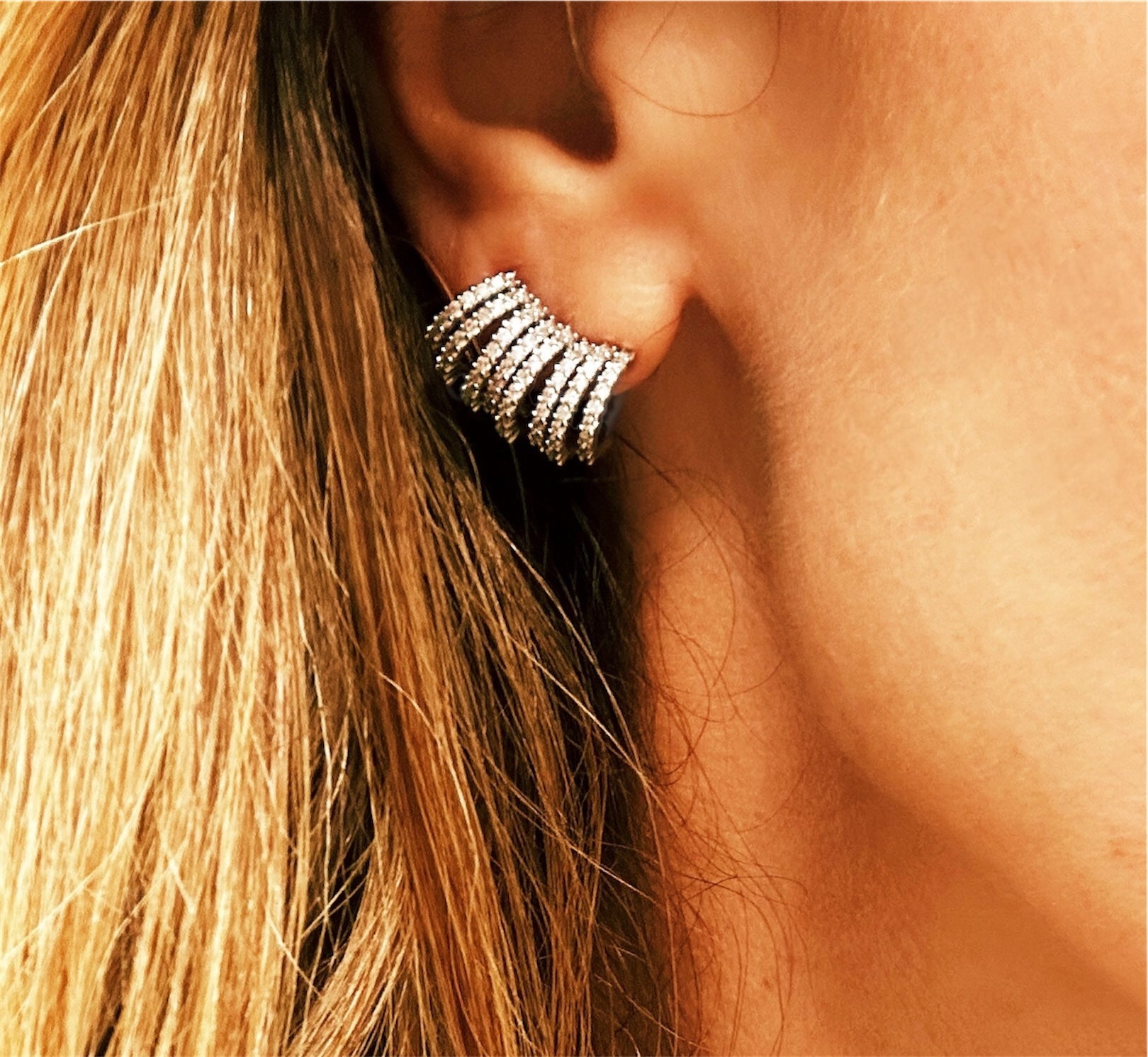 Introducing The Amelia, our first-ever earring, designed to redefine everyday elegance. With its sculpted, multi-band silhouette and rows of brilliant CZ stones, Amelia catches the light (and attention) from every angle.